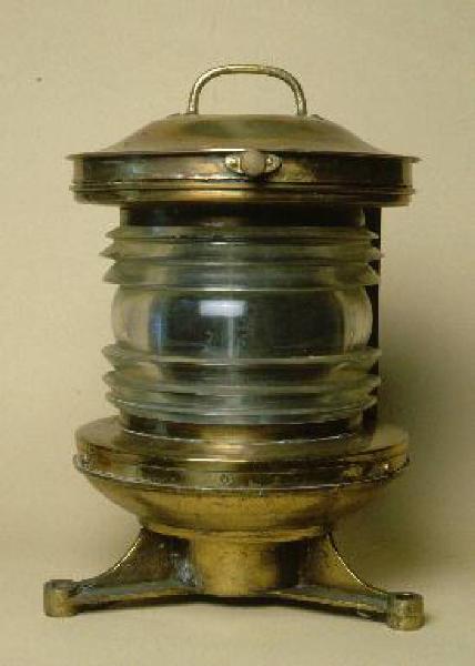 Fanale di via di colore bianco, con corpo cilindrico in ottone lucido e alimentazione elettrica. Il fanale poggia su tre piedi, predisposti per il fissaggio su un piano. Il coperchio, dotato di un'impugnatura sulla sommità, è chiuso da una vite sulla fronte del fanale ed è apribile per la sostituzione della lampadina. Il settore di illuminazione è pari a 225°.