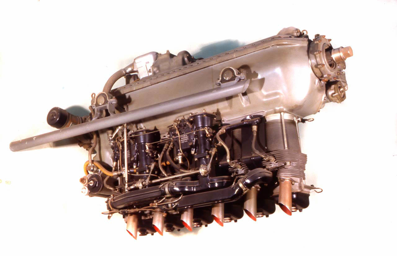 Motore a 6 cilindri invertiti in linea, raffreddato ad aria. La superficie esterna dei cilindri presenta un'ampia alettatura. La distribuzione è regolata da due valvole in testa ad ogni cilindro, comandate attraverso un albero a camme posto nel carter del motore. Il sistema di alimentazione comprende due carburatori Mona - Hobson, sistemati sul fianco destro del motore. L'accensione del carburante è ottenuta mediante due candele per ogni cilindro, alimentate da due magneti. Il motore è prvvisto di un motorino elettrico d'avviamento. Il carter presenta una verniciatura grigio chiara, con marche rosse.