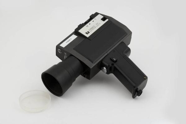 Cinepresa in metallo e plastica di piccole dimensioni, di forma parallelepipeda con bordi arrotondati, con impugnatura ergonomica in plastica nera. E' presente in una borsa rigida in pelle con tracolla in plastica e chiusura in metallo.\nAll'interno dell'apparecchio si ha un motore elettrico alimentato con quattro batterie da 1,5V inserite in un apposito supporto nell'impugnatura.\nSuperiormente è inserito un mirino ottico. Sul visore si può applicare un paraluce in gomma.\nUna parete è occupata dal vano porta cartuccia per la pellicola Super8. All'interno un ingranaggio sporgente si incastra in un apposito dispositivo rotante nella cartuccia che permette l'avanzamento della pellicola. Nel vano, in corrispondenza del punto dove la pellicola emerge dalla cartuccia, è inserita una guida che permette di farla scorrere dietro all'obiettivo.\nSull'altra parete si trova un contametro in metri e piedi (feet) e il comando per lo zoom.\nSulla parete frontale è inserito, al centro un obiettivo Bencini Dakor Zoom 13-27mm f/1:1,8 con paraluce e tappo in plastica.\nSull'impugnatura è inserito il tasto che avvia la ripresa e sotto si ha un foro filettato per l'inserimento su cavalletto.