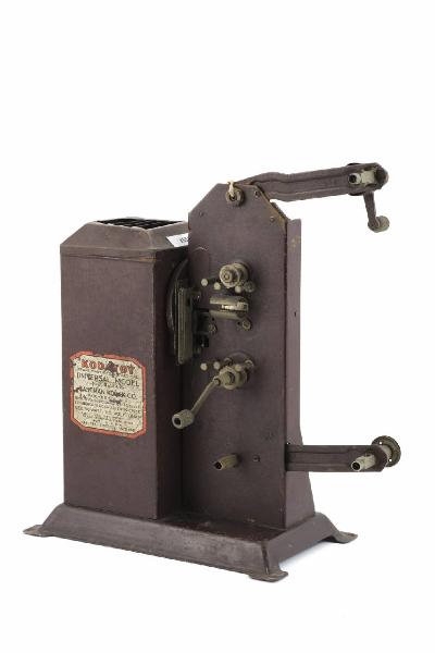 Proiettore cinematografico in metallo, di forma vagamente parallellepipeda poggiante su una base con flangia per il fissaggio al tavolo.\nE' costituito sostanzialmente da due parti: in una sono inseriti parte del motore, le parti elettriche e il dispositivo illuminante, l'altra è costituita dal dispositivo di proiezione.\nIl motore con ventola di raffreddamento è collegato alla sorgente di alimentazione mediante contatti elettrici posto sotto la base, sul retro della stessa si ha l'interruttore di accensione della lampada.\nL'apparato illuminante è costituito da un porta lampada (la lampada è mancante) inserito tra un piccolo specchio e una piccola lente condensatrice. Questa parte del proiettore è chiusa da un coperchio in metallo con fessure per l'aerazione e il raffreddamento.\nDavanti alla lente condensatrice si trova il dispositivo di proiezione. Questo è costituito da un telaietto rettangolare che costituisce la guida per lo scorrimento della pellicola, due bracci sui quali si inseriscono le bobine contenenti la pellicola da 16mm, una per la pellicola da proiettare e l'altra che raccoglie quella già proiettata, vari cilindri che permettono il corretto avanzamento e posizionamento della pellicola. Il telaietto presenta una riquadro rettangolare in corrispondenza del punto in cui si posiziona il fotogramma che viene proiettato.\nSu un lato del dispositivo di proiezione, in corrispondenza dei cilindri per l'avanzamento della pellicola, si hanno tre pulegge che venivano collegate mediante cinghie al motorino. Anche il porta bobina inferiore era collegabile al motorino.\nSu un rocchetto guida pellicola e sul porta bobina inferiore è anche inserita una piccola manovella per l'avanzamento manuale.