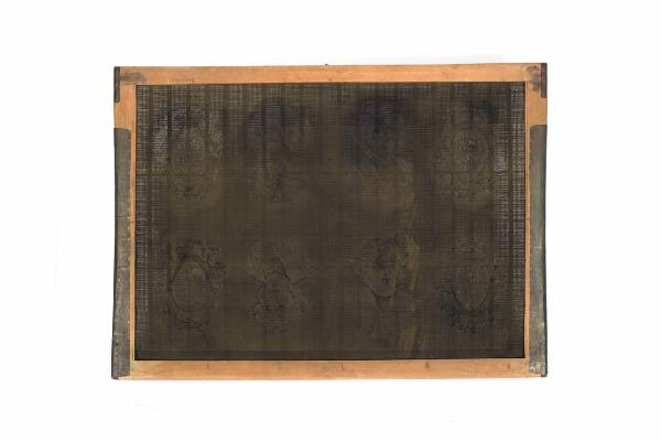 Telaio rettangolare in legno sul quale è fissata una rete metallica a maglia fine. Sulla rete, che funge da setaccio, sono riprodotte a sbalzo alcune immagini (quattro busti che ritraggono Cristoforo Colombo e quattro stemmi uguali) che realizzano una filigrana in chiaroscuro. Sul telaio è appoggiata una cornice in legno con rinforzo in metallo (cascio).\nIl retro della forma è rinforzato con astine in legno.