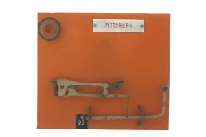 Cinematismo costituito da un sistema di leve formato da quattro elementi in acciaio, comprendenti la leva del tasto, la leva secondaria, il tirante e il martelletto portacaratteri. Per mezzo del tirante, la leva del tasto aziona la leva secondaria che a sua volta mette in movimento il martelletto. Il bottone del tasto è in gomma dura di colore nero. Il cinematismo è fissato ad un pannello in bachelite.