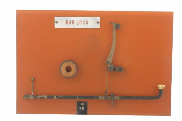 Cinematismo costituito da un sistema di leve formato da tre elementi in acciaio: la leva del tasto, il tirante e il martelletto portacaratteri. Il bottone del tasto è in gomma dura di colore bianco. Il movimento di ritorno del tasto è guidato dalla molla a torsione posta nella parte finale della leva. Il cinematismo è fissato ad un pannello in bachelite.