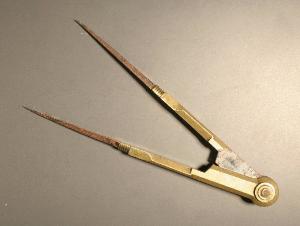 Impugnatura a testa tonda con aste in ottone. Entrambe le punte sono fisse, a sezione triangolare, in acciaio.