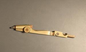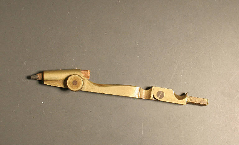 corto braccio snodabile in ottone, con testa a sezione quadrata e parte finale a ganascia con vite per il fissaggio di una sottile matita