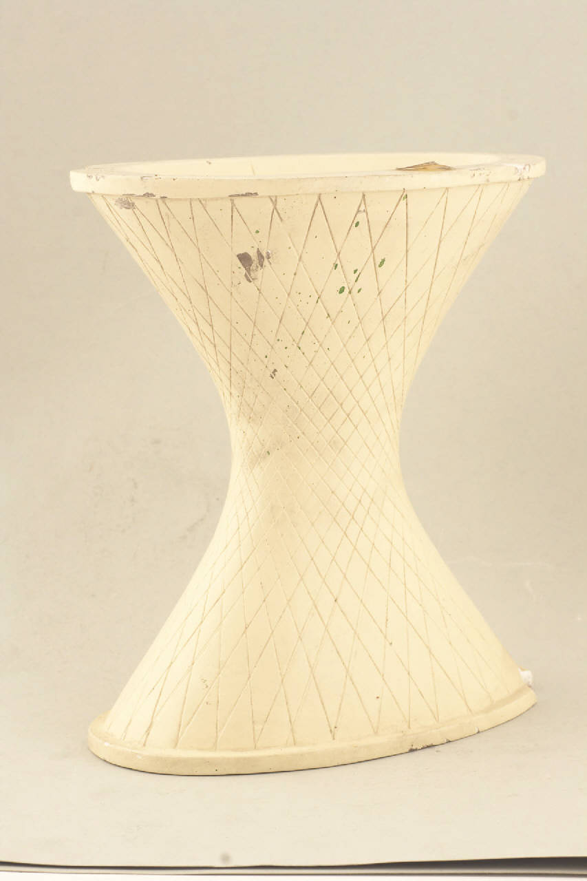 Il modello, una forma sagomata in gesso bianco, rappresenta una superficie luogo di punti dello spazio le cui coordinate soddisfano un¿equazione di secondo grado, in tre variabili (cioè "quadrica"), le cui sezioni parallele all'asse non trasverso sono delle iperboli (da qui il nome di iperboloide), mentre quelle perpendicolari a detto asse, sono ellissi. Questa superficie ha tutti i suoi punti di tipo iperbolico ed è composto da due sistemi, o schiere, di rette, dette generatrici, che: da ogni punto della superficie esce una retta di ciascuna schiera; due rette di ciascuna schiera sono sghembe fra loro; due rette di schiere diverse sono fra loro incidenti sempre. Il sistema di rette costituisce una unica falda che si estende, geometricamente, all'infinito; qui, nel modello, è delimitata da due piani normali all'asse non trasverso, e simmetrici rispetto al centro.\nLa superficie del modello, detta anche mantello, presenta sulla parte superiore, dei solchi regolari, tracce di alcune delle rette, generatrici.
