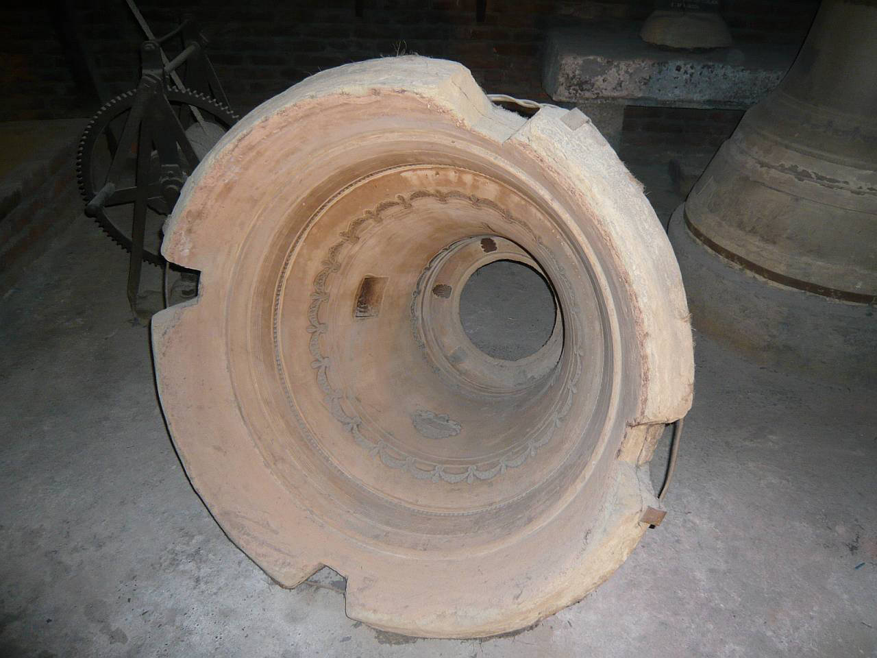 Forma esterna di campana in creta e corda con tiranti in ferro nella parte esterna più larga. All'interno si hanno alcune incisioni in negativo a motivi religiosi, floreali, geometrici.