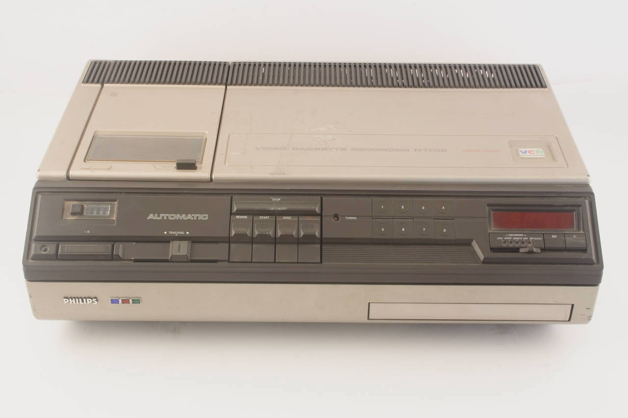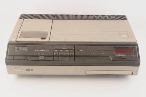 Videoregistratore VCR con mobile in materiale plastico marrone con profili color oro. \nSulla faccia superiore, una fascia inclinata per comodità d'uso, si hanno i comandi d'uso.\nSulla parte piana della faccia superiore si ha il vano per l'inserimento della videocassetta chiuso da uno sportello e si vedono all'interno i fusi per la collocazione della videocassetta e le testine di registrazione/riproduzione inclinate e in posizione azimutale.\nI comandi sono costituiti da tasto di accensione con relativa spia, cursore per il tracking, contagiri, tasti per arresto, riavvolgimento, avvio, avanzamento, registrazione.\nSi hanno inoltre otto tasti per i programmi memorizzati utilizzando le rotelle di sintonia poste all'interno di uno sportellino girevole posto sotto ai tasti e al display. Il display a Led si trova di fianco ai canali dei programmi, insieme ad un deviatore a slitta con i comandi per la registrazione (blocco, avvio, lunghezza, giorno) e posizione per la regolazione dei parametri. Oltre ai tasti di avanzamento e avvio.\nNella parte posteriore, forata per l'aerazione, si trovano una boccola per il collegamento di un'antenna interna e una per antenna esterna oltre ad una presa per il cavo di collegamento alla rete elettrica.