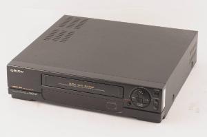 Videoregistratore VHS PAL HQ con scocca in plastica nera. LA parete frontale è occupata dal vano per l'inserimento della videocassetta, dal display a Led e dai comandi d'uso.\nLa videocassetta si inserisce attraverso uno sportello incernierato nella parte alta. Sotto si ha il display. A destra i comandi avvio, riavvolgimento, avanzamento, stop/espulsione, accensione, cambio canale, registrazione.\nSul retro si hanno le boccole per il collegamento RF, un interruttore per il test del segnale, una presa scart, il cavo di collegamento alla rete elettrica.