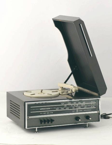 Radiofonografo soprammobile a sviluppo orizzontale, con mobile in legno laminato lucido poggiante su quattro piedini in metallo. \nLa parete frontale è per metà protetta da un pannello in plastica trasparente, per metà in plastica grigia. La parte superiore contiene l'indicatore di sintonia con scala lineare e indicazioni numeriche per onde in modulazione di frequenza (MF104-88), onde audio TV (con indicazioni GB, F, H, E, ADC), onde medie (OM, 160-52). La parte inferiore contiene quattro interruttori a leva per la commutazione di gamma (TV, MF, MA, FO), e due manopole per la regolazione del volume e la sintonia.\nIl coperchio superiore è incernierato sul lato destro e apribile. All'interno si ha il giradischi con piatto in metallo e gommini antiscivolo, braccio in plastica con testina rivelatrice piezoelettrica con due puntine (M.S. e 78 giri) e un selettore per la velocità di rotazione del disco (16, 33, 45, 78 giri).\nAi lati sono presenti alcune griglie di aerazione e il retro è chiuso da un pannello forato sul quale si hanno le prese fonografica, antenna AM ed FM (sia 75 Ohm che 300 Ohm), messa a terra.\nDal retro fuoriesce il cavo di collegamento alla rete elettrica.\nAll'interno si trovano un circuito supereterodina a cinque valvole e un raddrizzatore metallico (funzioni di valvole: 12), un altoparlante ellittico magnetodinamico.