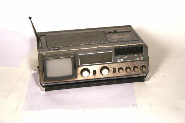 Dispositivo che racchiude un televisore e un radioregistratore. La scocca del dispositivo è in plastica grigia con maniglia per il trasporto utilizzata anche come piedistallo per posizionare in maniera inclinata l'apparecchio e facilitarne l'uso.\nLa parete frontale è occupata dallo schermo 5 pollici del cinescopio a colori, dai comandi di selezione delle frequenze televisive e radiofoniche con relative scale di sintonia e dai comandi d'uso del registratore.\nLe scale di sintonia riguardano le frequenze TV: VHF L per canali da 2 a 34, VHF H per canali da 5 a 12, UHF per canali da 21 a 69. Per le frequenze radio si hanno onde medie da 51 a 160 x 10kHz, onde lunghe da 15 a 35 x 10kHz, in modulazione di frequenza da 88 a 108 MHz.\nSotto alle scale di sintonia si ha una manopola per la sintonia TV (standard sia PAL sia SECAM) e un deviatore per la selezione delle bande TV VHF L, VHF H, UHF, una manopola per la sintonia radio e un deviatore per le gamme d'onda MW, LW, FM.\nA destra si hanno i tasti di comando del registratore (registrazione, riavvolgimento, avanzamento, avvio, stop/espulsione cassetta, pausa), una presa per microfono, le manopole per la regolazione di volume, tono, sorgente e un selettore per l'accensione e la scelta di funzione TV/RADIO.\nIn corrispondenza dei tasti, sulla parte superiore dell'apparecchio è presente uno sportello apribile che chiude il vano per l'inserimento dell'audiocassetta. All'interno sono visibili i due fusi per la rotazione delle bobine dell'audiocassetta e le testine per la registrazione e la riproduzione. E' inoltre presente un contagiri.\nSempre sulla parte superiore dell'apparecchio si hanno una griglia a protezione dell'altoparlante circolare e un'antenna a stilo orientabile.\nAi lati dell'apparecchio sono presenti numerosi altri comandi locali e prese. A destra, un tasto di accensione, un deviatore per la posizione d'uso o di carica delle batterie, un variatore di tensione, una presa per il cavo di collegamento alla rete elettrica e una per il collegamento di una batteria a 12V, diverse prese per microfono, cuffie, ecc. A sinistra una presa per antenna FM/TV, un deviatore per lo standard Tv a colori (PAL/SECAM), per l'audio TV, un tasto per la smagnetizzazione, delle manopole per la regolazione della sincronizzazione verticale, della luminosità, del contrasto, del colore.\nSul retro si ha il vano per 10 batterie da 1,5V.