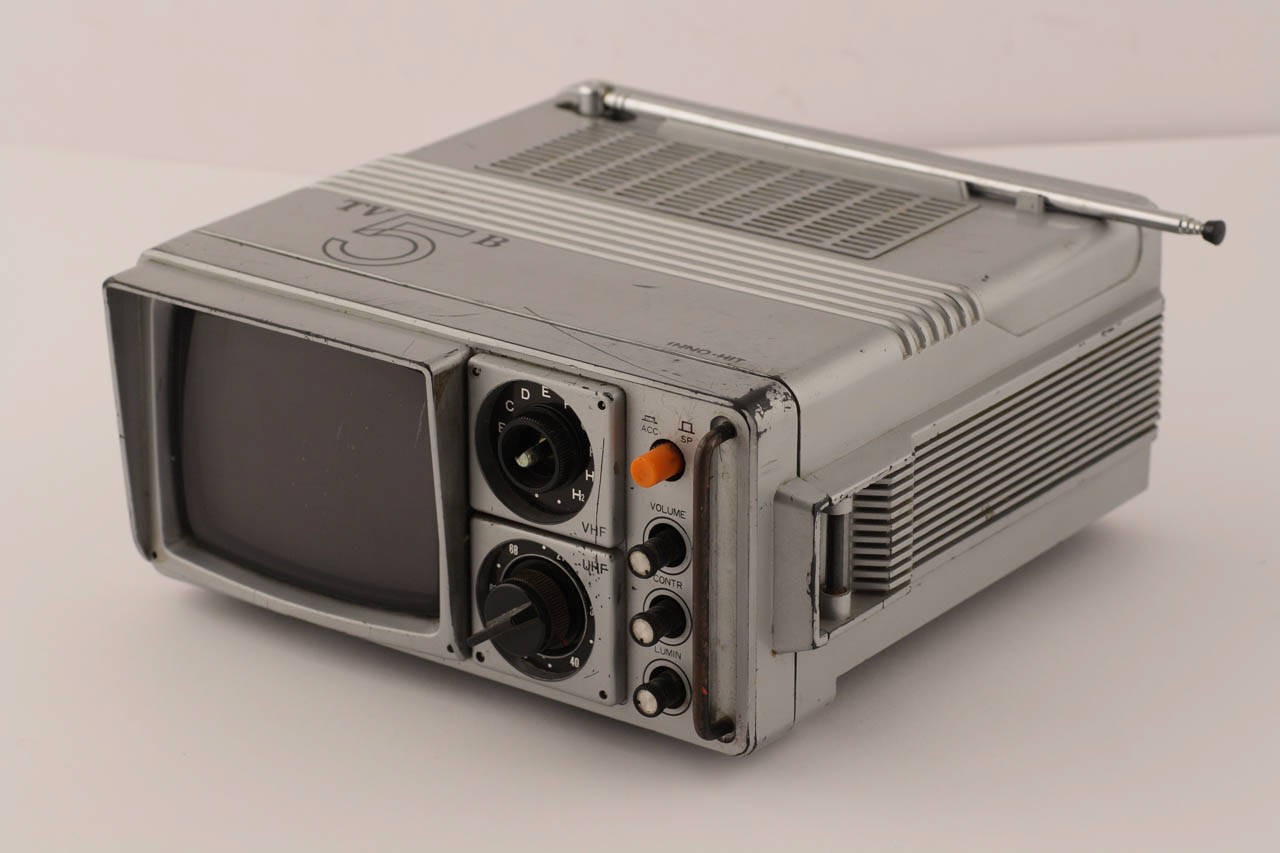 Televisore portatile in plastica grigio chiaro. Il piccolo schermo da 5 pollici è collocato nella parte sinistra della parete frontale. Accanto si hanno un selettore per i canali VHF (da A ad H2) con regolazione fine, una manopola per i canali UHF (da 21 a 68). Si hanno inoltre un tasto di accensione arancione e tre manopole per la regolazione di volume, contrasto, luminosità.\nLa parete superiore è tutta a griglia e sul retro presenta un'antenna a stilo orientabile.\nSulla parete sinistra si hanno due prese per collegare un registratore e un auricolare.\nSul retro si hanno una presa per il collegamento alla rete elettrica, una presa per antenna con deviatore per la selezione di antenna esterna o incorporata, delle viti per la regolazione di altezza, frequenza verticale, linearità verticale.\nSotto si hanno il vano batterie (coperchio mancante) e un piede estraibile per l'appoggio del televisore.