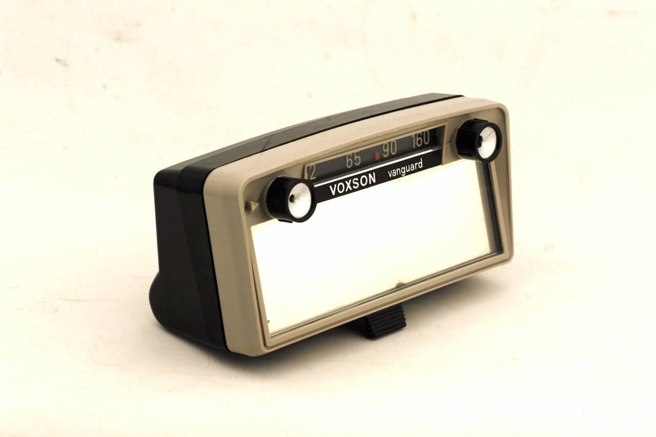 Apparecchio a forma leggermente trapezoidale, realizzato in materiale plastico opaco in due parti assemblate: la parte frontale e' realizzata in plastica color bianco sporco, mentre quella posteriore e' in plastica nera lucida. Sulla superficie frontale si hanno la scala di sintonia con indicazioni numeriche da 52 a 160 kHz, con due manopole una per l'accensione e la regolazione del volume e l'altra per la selezione della sintonia. Sotto alla scala si ha una superficie a specchio che sostituisce lo specchietto retrovisore al posto del quale si posizionava l'apparecchio nell'autovettura. Una levetta posta sotto l'apparecchio consentiva di modificarne la posizione (utilizzata per la sistemazione dello specchio). Sul fondo dell'apparecchio è presente un interruttore a slitta per l'accensione della lampadina posta nelle vicinanze. Sul retro si hanno lo snodo per fissare l'apparecchio all'autovettura, una presa pentapolare per l'alimentazione e il collegamento al gruppo altoparlante, una presa per il collegamento a massa.\nAll'interno si ha un circuito stampato sul quale sono montati i diodi a cristallo e i transistor. E' inoltre presente un'antenna AM incorporata in ferrite.\nCaratteristiche tecniche:\npotenza d'uscita: 2,5W col 10% di distorsione\nalimentazione: cc da accumulatori 12 V, 0,5A, polarità invertibile