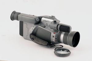 Videocamera in materiale plastico grigio scuro, portatile, con impugnatura ergonomia antiscivolo e maniglia superiore per il trasporto. \nIn asse con la maniglia si trovano, sul retro e sul fronte rispettivamente, il mirino con oculare e il microfono. In mezzo si hanno i tasti per la regolazione dello zoom e il comando di accensione. La parte del mirino può essere inclinata fino a 90°.\nSul lato sinistro si hanno il vano per l'inserimento della cassetta e alcuni comandi. Il vano porta cassetta è costituito da un comparto in metallo nel quale inserire la videocassetta. Sullo sportello del vano cassetta si trova un display digitale con alcuni comandi per la programmazione, la regolazione di data e ora, della velocità dell'otturatore ecc. Intorno al vano altri comandi regolano le modalità di memorizzazione e del contagiri. Si ha inoltre un dispositivo di blocco. Sopra allo sportello si hanno un commutatore per l'accensione e la selezione delle modalità di ripresa e riproduzione e i pulsanti per avvio, avanzamento e riavvolgimento veloce, arresto, pausa, espulsione cassetta e alcuni comandi per l'uso del menu che compare sul display.\nSul lato destro si trovano i comandi di avvio della registrazione, standby e arresto e boccole per connettori audio/video e cuffie.\nNella parte anteriore si ha l'obiettivo con zoom 12x con paraluce in gomma e tappo in plastica. Sul corpo dell'obiettivo si hanno un anello per la messa a fuoco e uno per la regolazione dello zoom (da 5.5 a 66mm), alcuni comandi per la messa a fuoco (manuale o automatica) e per l'inserimento di filtri.\nNella parte posteriore è inserita, su una guida a slitta, la batteria NP-90 Ni Cd.\nSotto alla videocamera si ha un foro filettato per l'inserimento di un cavalletto.