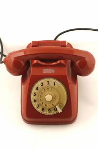 Apparecchio da tavolo a posta mobile, costituito da una monoscocca in plastica stampata color rosso che racchiude la suoneria e i meccanismi del combinatore. Nella parte anteriore della scocca è presente un foro da cui fuoriesce il disco combinatore in plastica trasparente a dieci cifre da 1 a 0. Il microtelefono, sempre in plastica rossa, poggia direttamente sui due vani ricavati nella parte superiore della scocca. In questi due vani sono presenti due tasti di interruzione linea con funzioni di forcella. Il microtelefono racchiude il trasmettitore (microfono a carbone) e il ricevitore (a bobina e calamita), uniti da una parte centrale che funge da impugnatura. Dal microtelefono fuoriesce un filo in plastica morbida di colore nero che lo collega al corpo del telefono. Sotto al telefono è presente una rotella per la regolazione del volume della suoneria.