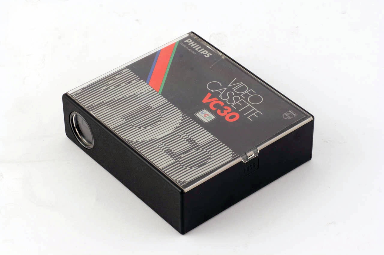 Videocassetta sistema VCR costituita da una bobina di nastro magnetico da ¿ pollice inserita in una scatola in plastica nera e trasparente. Al centro della faccia inferiore della scatola è presente un'apertura che rende possibile l'aggancio della bobina al fuso del videoregistratore. Un lato della scatola è costituito da uno sportello apribile dove scorre il nastro magnetico che va in contatto con le testine del videoregistratore.\nLa videocassetta è contenuta in una custodia in plastica a sua volta conservata in una scatola in cartone.