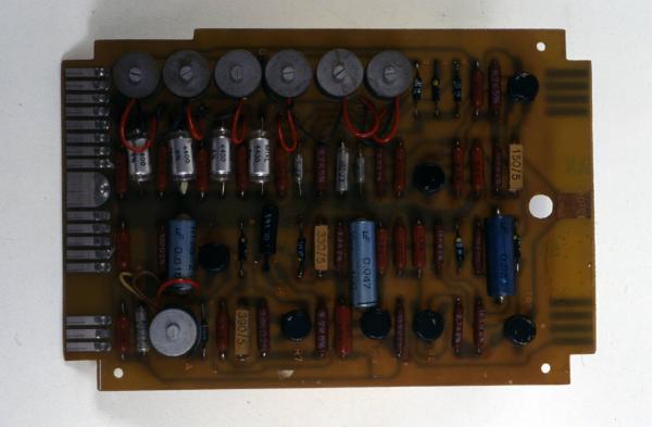 L'oggetto è costitutito da una piastra di bachelite sulla quale è presente un circuito stampato.\nSu di essa sono installati componenti elettronici quali resistori, diodi, condensatori, transistor e nuclei di ferrite.\nIl circuito stampato termina sui due lati corti della scheda sagomati per l'alloggiamanto nei connettori di collegamento alle altre parti del sistema.
