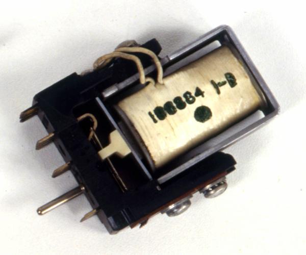 Il dispositivo è costituito da una struttura plastica a "U" sulla quale è montata una bobina elettromagnetica.\nDalla parte inferiore della struttura plastica fuoriescono, per il collegamento elettrico del dispositivo ad altre parti circuitali, 4 gruppi di 4 lamelle in ottone, 2 dei quali costituiti da 4 lamelle piegate a "V" rovesciato, ed un perno metallico per il suo fissaggio meccanico.\nNella parte sottostante la bobina una lamina di acciaio imperniata ad una estremità nella plastica supporta una struttura plastica a pettine, solidale con essa, dove sono posizionati 4 fili fissati ad un'estremità nella struttura plastica e liberi all'altra estremità di collegarsi o meno ai due gruppi di lamelle a "V" in funzione dello stato di eccitazione del relé. .\nAi 4 gruppi di lamelle fanno così capo:\n- al più esterno 4 fili elettrici uscenti dalla bobina,\n- all'estremità opposta un capo dei4 fili mobili\n- ai 2 restanti l'altro capo dei 4 fili mobili in funzione dello stato di eccitazione del relè.