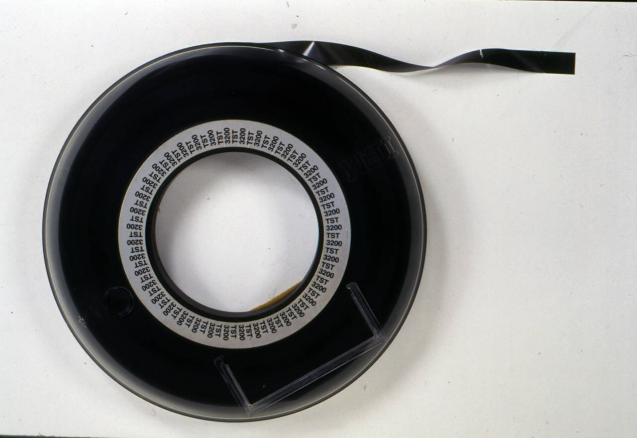 L'oggetto consiste in un nastro di materiale plastico scuro (è il colore dello strato superficiale ferromagnetico, probabilmente ossido ferrico o biossido di cromo) avvolto su una bobina in materiale plastico traslucido.