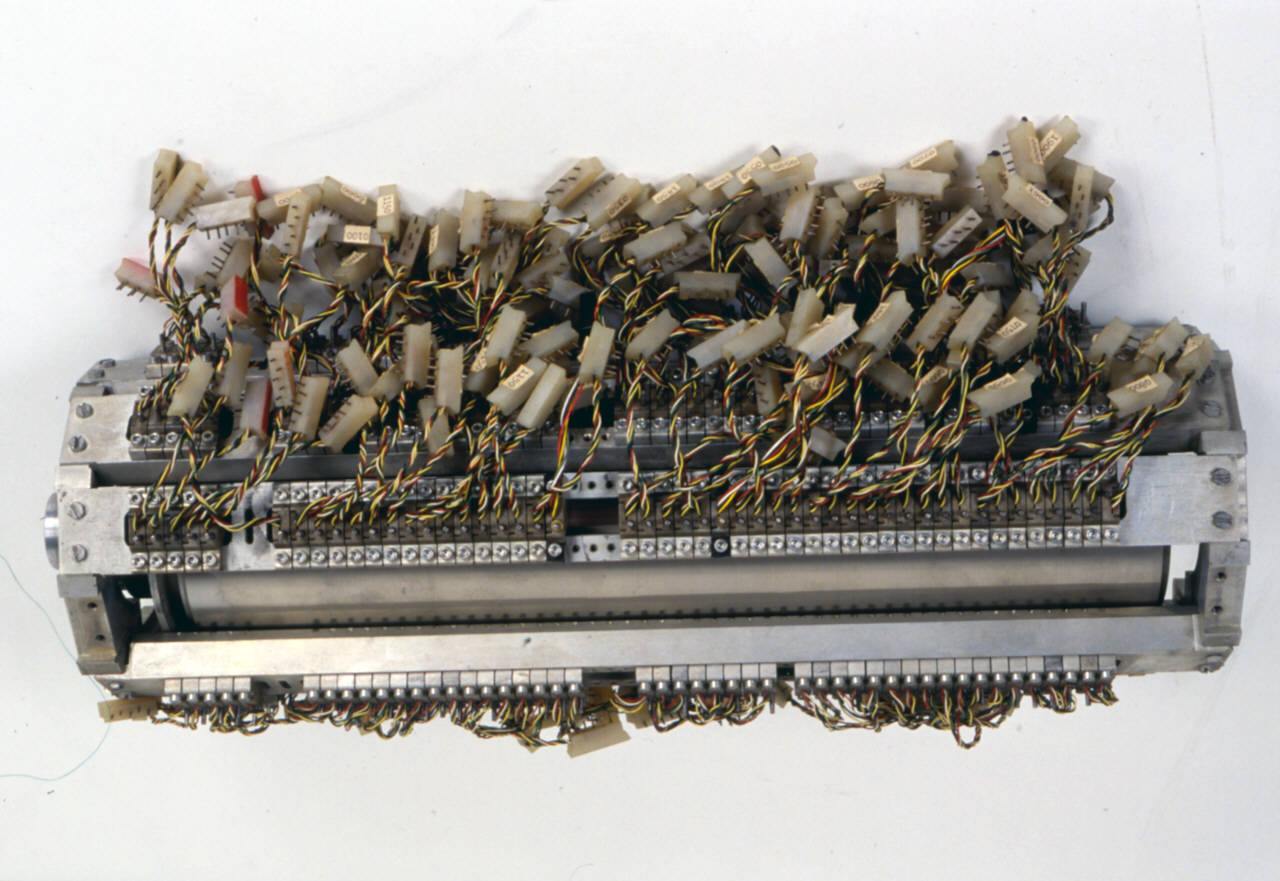 Il dispositivo è costituito da due parti separate: il tamburo e il blocco dei sensori. Il dispositivo nel suo complesso prevede che il tamburo venga inserito nel blocco dei sensori.\nIl tamburo è un cilindro in acciaio, internamente cavo, del diametro di 10 cm e lungo circa 41 cm; all'interno è inserito un albero costituito anch'esso da un cilindro cavo di diametro 3,5 cm lungo 50,5 cm fissato alle estremità del cilindro e libero di ruotare indipendentemente dalla rotazione del cilindro.\nAd una estremità del cilindro, montata sull'albero, ma solidale con il cilindro stesso, è presente una parte di diametro 6 cm con l'estremità dentata; su questa parte è inserito un disco estraibile, di diametro leggermente superiore a quello del cilindro, che serve a fissare il tamburo sul blocco dei sensori.\nIl blocco dei sensori è costituito da un telaio semicilindrico in alluminio realizzato in modo da poter accogliere il tamburo. Su un lato del telaio sono montati quattro blocchi di sensori magnetici costituiti rispettivamente da 18, 8, 16 e 5 testine magnetiche, da ognuna fuoriescono cinque fili di rame rivestiti in plastica che terminano su connettori a pin, ciascuno dei quali contrassegnato da un numero.\nSul lato opposto del telaio sono montati tre file di blocchi di sensori magnetici, ciascuna costituita da tre blocchi da 27, 16 e 5 testine magnetiche; anche da ciascuna di queste fuoriescono cinque fili di rame rivestiti in plastica che terminano su connettori a pin, ciascuno dei quali contrassegnato da un numero.
