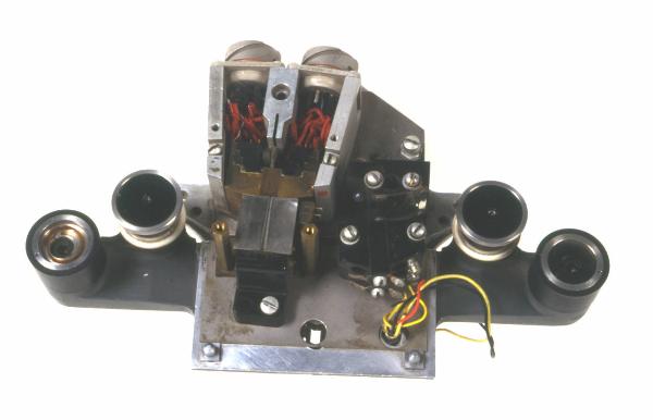 La testina è costituita da due bloccchi di alluminio imperniati ad un'estremità; quello inferiore porta i 4 rulli di trascinamento del nastro e un dispositivo di blocco del nastro.\nIl blocco superiore comprende la testina di lettura/registrazione con i relativi due connettori a pin; posteriormente è presente un altro connettore.