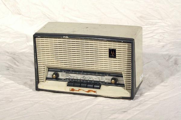 Radioricevitore con scocca in plastica grigia e bianca da tavolo con bordi arrotondati.\nLa parete frontale è occupata, nella parte alta, da una griglia a protezione dell'altoparlante ellittico magnetodinamico e, nella parte bassa, dalla scala di sintonia, il potenziometro per la regolazione del volume e il commutatore per la sintonia. Sulla scala di sintonia si hanno le frequenze per onde corte (49-31m), TV (0-90), onde medie (550-200m), FM (86-104Mc).\nSotto la scala si ha un commutatore di gamma a tastiera (fono, media, corte, TV, MF). Nelle vicinanze si ha il marchio della Phonola ma manca l'etichetta con scritto il nome per esteso (e probabilmente il modello della radio).\nIl retro è chiuso da un pannello in plastica forato sul quale si hanno le prese per l'antenna FM (300Ohm), quelle per il collegamento di un giradischi (fono), una variatore di tensione e fuoriesce il cavo elettrico di collegamento alla rete di alimentazione.\nAll'interno si ha il circuito supereterodina con 5 valvole e un raddrizzatore metallico (funzioni di valvole:13), con antenna AM incorporata e fissa ed FM interna.