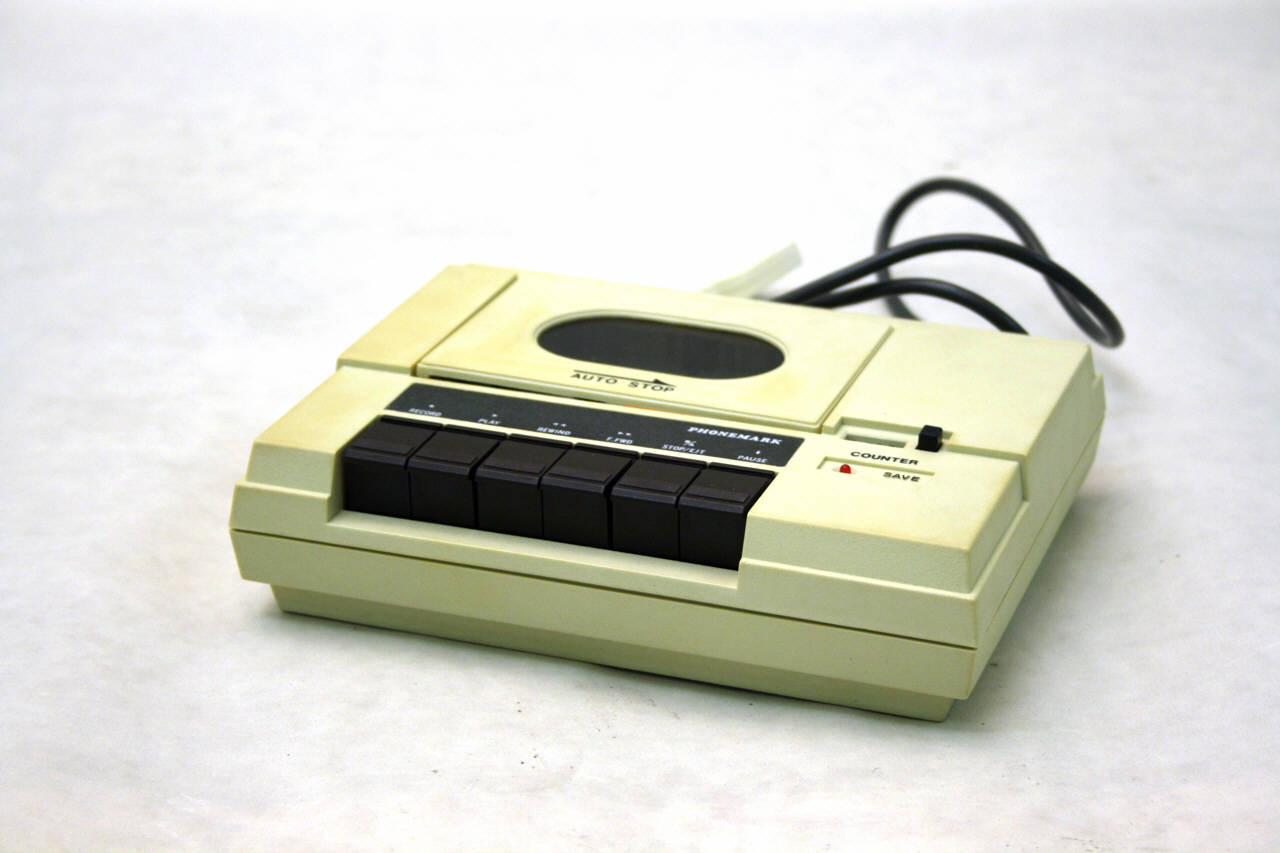 Dispositivo in materiale plastico bianco un po' ingiallita. Si presenta come un registratore a musicassette. Sulla faccia superiore è presente il vano per l'inserimento di una cassetta chiuso da uno sportello parzialmente trasparente attraverso il quale sono visibili le testine di lettura/scrittura e di cancellazione, il rullo di presa del nastro magnetico, i perni motore e tornante per il trascinamento della cassetta. Di fianco si ha un contagiri e un led indicatore.\nNella parte anteriore si hanno i tasti per l'uso: registrazione, avvio, riavvolgimento, avanzamento veloce, stop, espulsione cassetta.\nDal retro fuoriesce il cavo di collegamento al computer.