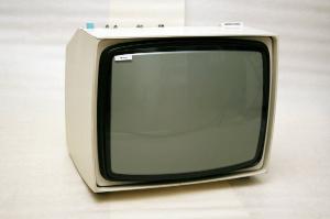 Televisore con mobile in plastica bianca, dagli spigoli arrotondati e parete leggermente bombate. Lo schermo del cinescopio da 22 pollici autoprotetto occupa tutta la parete frontale.\nNella parte superiore si hanno i comandi d'uso. Si trova un interruttore di accensione azzurro, alcune leve per la regolazione di tono, volume, contrasto, luminosità, tinta, colore, sei tasti per la selezione di altrettanti programmi memorizzati. Sul retro la scocca del televisore scende obliquamente, con una superficie forata per l'aerazione. Nella parte posteriore più bassa si ha un pannello avvitato sul quale si trovano una vite di regolazione della frequenza verticale e una presa per antenna da 75 Ohm. Dal retro fuoriesce anche il cavo di collegamento alla rete elettrica.