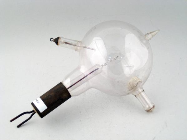 L'oggetto è costituito da una ampolla in vetro di forma all'incirca sferica sulla quale sono inseriti, in posizione opposta ma non esattamente simmetrica, due piccoli tubi - sempre in vetro - di forma cilindrica. All'estremità di uno di questi è collocato un elettrodo metallico mentre l'altro tubicino contiene alcuni frammenti di materiale fluorescente. L'ampolla principale si allunga in un suo punto fino a formare un cilindro alla cui estremità è collocato il secondo elettrodo. I due elettrodi venivano utilizzati per generare una scarica elettrica all'interno del tubo stesso che consentiva di rendere luminescente il materiale fluorescente.