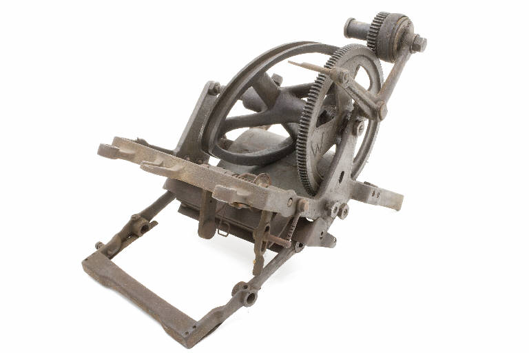 L'oggetto è un elemento meccanico accessorio ad una macchina. Contiene un elemento eccentrico che riceve il movimento da una puleggia dentata