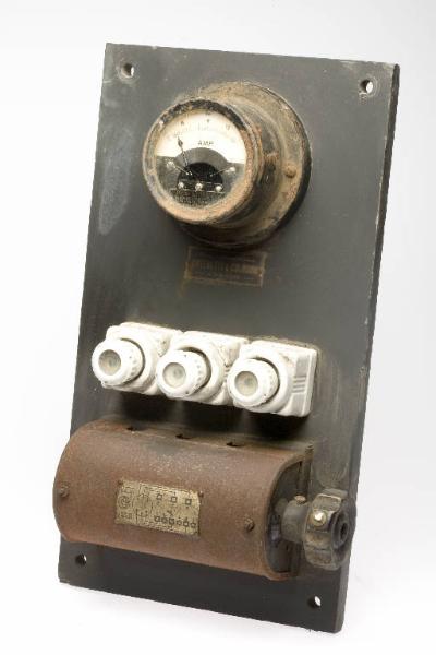 L'oggetto è costituito da un pannello isolante in pietra su cui sono collegati: un amperometro (che misura l'assorbimento di corrente); portafusibili con 3 fusibili in porcellana (valvole) per la protezione della linea di avviamento; un sezionatore rotativo tripolare (interruttore)