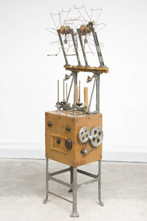 Lo strumento è un prototipo formato da un corpo centrale con i meccanismi per il movimento. Da questo emergono i due fusi e gli accessori per l'avvolgimento del filo. Sopra ancora i supporti per gli aspini, con due aspini. L'apparecchio funziona elettricamente