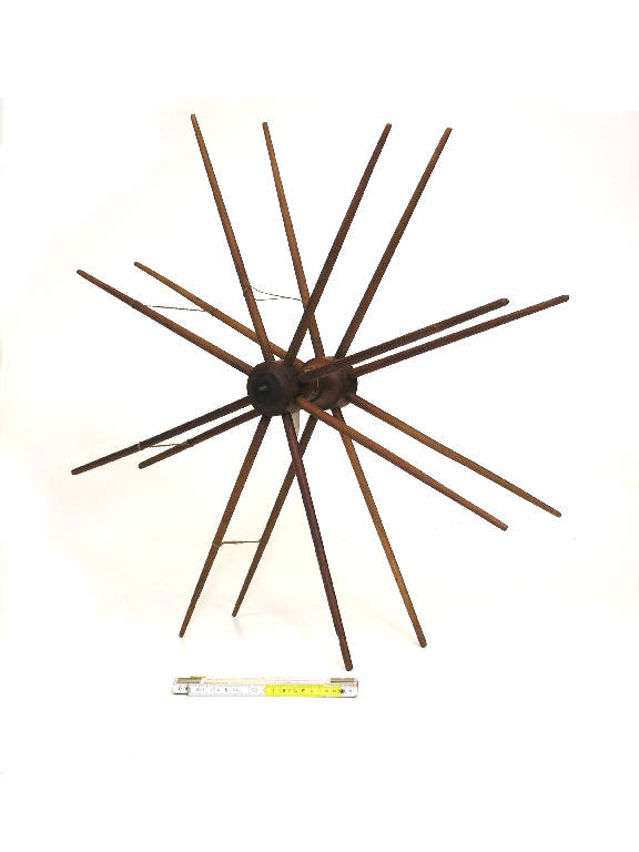 Aspino con 8 raggi doppi, a sezione circolare e rastremati all'apice. Le coppie di raggi sono collegate da cordicelle che forniscono l'appoggio alla matassa