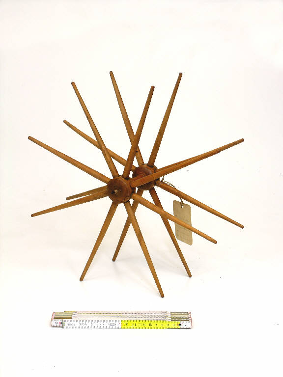 Aspino con 8 raggi doppi, a sezione circolare e rastremati all'apice. Le coppie di raggi erano collegate da cordicelle (oggi mancanti) che forniscono l'appoggio alla matassa