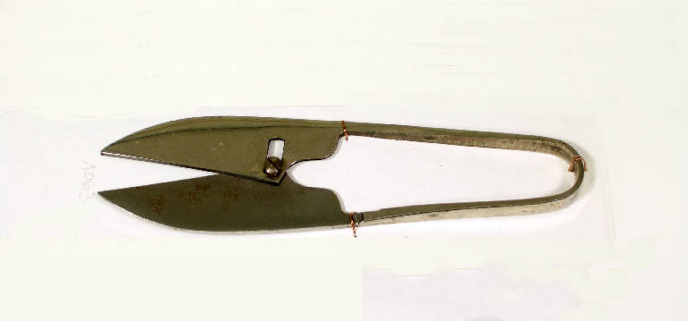 L'oggetto è realizzato in un solo pezzo, con le due lame raccordate da una porzione piatta e curva con funzione di molla che ne determina l'apertura, limitata d'altro canto nella sua ampiezza da una vite fissata ad una lama e passante in una fenestratura dell'altra.