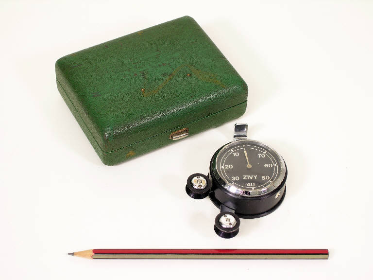 Lo strumento è costituito da un corpo centrale in metallo, di forma circolare, con un quadrante. La parte dello strumento che esegue la misurazione è quella posteriore, con due rotelle scanalate e mobili per la presenza di una molla all'interno dell'apparecchio. La lettura avviene tramite la lancetta che si muove sul quadrante anteriore, graduato da 0 a 70, corrispondente ad un range di tensioni da 10 a 70 grammi. Sul retro compare, a caratteri punzonati, il numero di serie dell'apparecchio: 024646. L'oggetto completo si compone dello strumento, della sua scatola originale e di una copia delle istruzioni d'uso (identiche per gli oggetti INVN 001088 e INVN 001089)