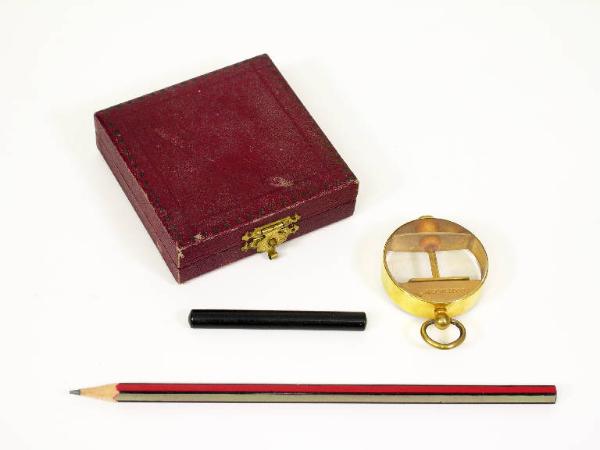 L'oggetto completo comprende lo strumento, una bacchetta di materiale sintetico (?) che si può caricare elettricamente e la scatola originale