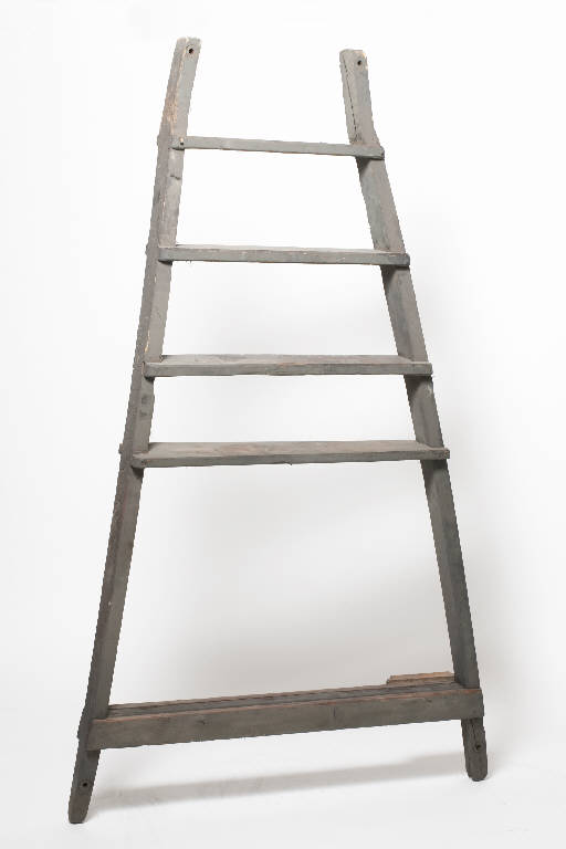 L'oggetto è una scala a 5 gradini e dalla particolare forma: blandamente convessa e molto ampia alla base, va restringendosi e assumendo andamento leggermente concavo verso l'alto. La forma è studiata per potersi appoggiare saldamente, in alto, al piantello, fornendo contemporaneamente uno stabile sostegno al filatore. Particolare è anche la distanza particolarmente ampia fra il primo gradino in basso e i successivi, che sono invece equidistanti tra loro.