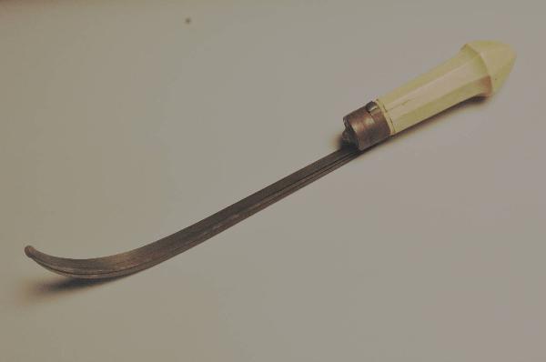 Lo strumento consta di tre lamine di acciaio sagomate, flessibili e unite al vertice, che, tramite una rotazione, potevano essere aperte, in modo da adattarsi alla testa del feto. Le lamine sono fissate ad una impugnatura di avorio.