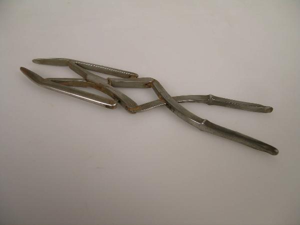 Dispositivo formato da due bracci snodabili che si incrociano in due diversi punti. L'estremità delle valve presenta una lieve concavità.\nDalla parte dell'impugnatura i due bracci si incastrano l'uno dentro l'altro e, al di sopra del punto di incastro, ciascuno di essi si prolunga in un braccio snodato grazie al quale essi possono nuovamente incrociarsi. All'estremità superiore sono fissati sul lato esterno di ciascun braccio altri due pezzi che completano il meccanismo che permette l'apertura e la chiusura dello strumento.