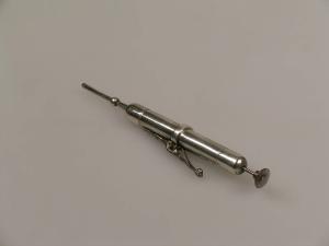 Un ago da cataratta è nascosto all'interno di uno strumento simile nella forma a una siringa. L'ago è unito allo stantuffo e il suo scorrere all'interno della siringa è regolato da una sorta di molla. Una levetta posta all'esterno dello strumento consente di bloccare la molla e, di conseguenza, la posizione dell'ago quando esso sporge in fuori. Premendo la leva l'ago si sblocca e rientra con uno scatto all'interno dello strumento.