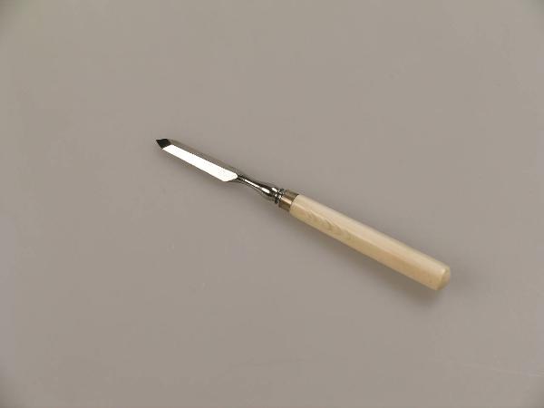 Su un manico in avorio a sezione ottagonale si innesta uno scalpello a forma di prisma, terminate con una punta acuta.