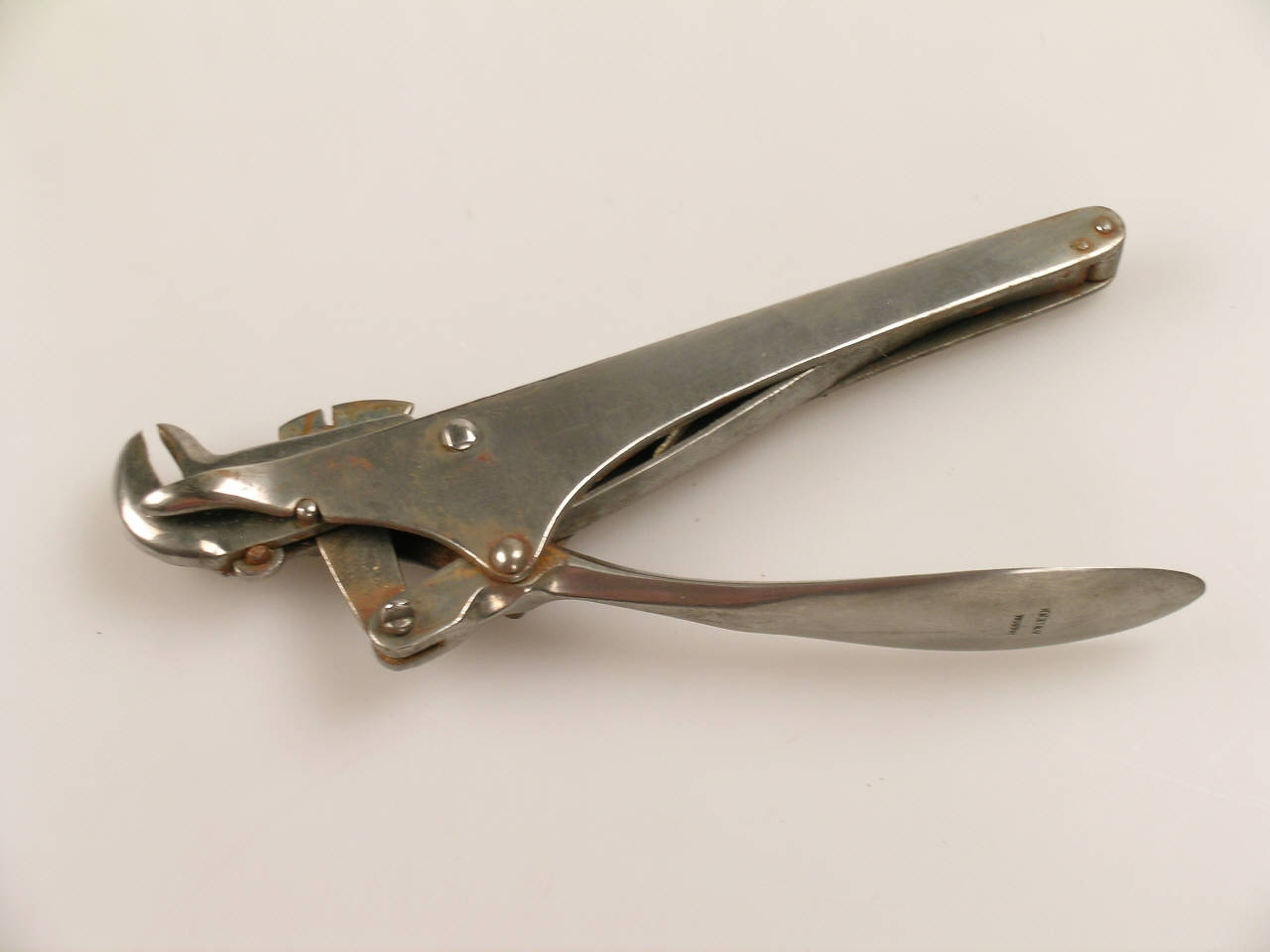 Su un massiccio corpo in acciaio si innestano i rebbi della pinza, concavi e dotati di una zigrinatura interna, la cui apertura o chiusura deriva dallo scorrere verso l'alto o verso il basso del rebbio posto inferiormente. L'impugnatura è costituita da questo corpo fisso e da una leva, premendo la quale, grazie ad un meccanismo interno, si poteva esercitare una forte presa e, cotemporaneamente far leva sulla gengiva.