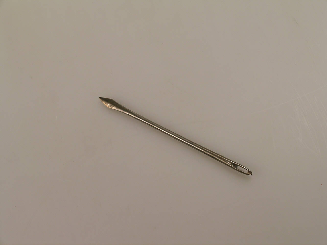 Ago in acciaio, nella cui cruna si faceva passare il setaceo.