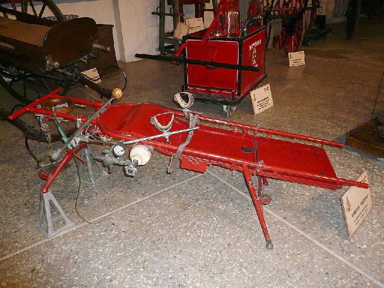 Impiegata per il soccorso a persone colpite da principio d'asfissia, folgorazione, annegamento era, per il periodo d'impiego, gli anni '20, rivoluzionaria e all'avanguardia. Quando quasi tutte le attrezzature usate dai pompieri erano pesanti, ingombranti, dove lo sforzo umano era determinante, questa barella, al contrario era pieghevole, maneggevole, leggera e completa di bombola d'ossigeno. In anni in cui fra le materie insegnate ai pompieri non figurava il pronto soccorso, questa barella eliminava il problema: bastava azionare la leva sulla sinistra perché i bracci a cui erano legati gli arti superiori dell'infortunato compissero un movimento simile a quello effettuato dalle tecniche dettate agli allora soccorritori sanitari, per effettuare la respirazione artificiale; abbandonata in seguito perchè purtroppo mancava il controllo del ritmo cardiaco ma soprattutto per l'evoluzione di nuovi protocolli/manovre sanitarie.