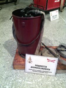 Pompetta monocilindrica completa di lancia e succhieruola periodo d'impiego 1920. Con 10 metri di tubo in canapa nel diametro 18 e relativa lancia.