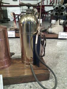 Serbatoio spalleggiabili per trasporto acqua a fini antincendio e per disinfestazione. Periodo impiego 1930/1945. Materiale Lega rame bronzo.
