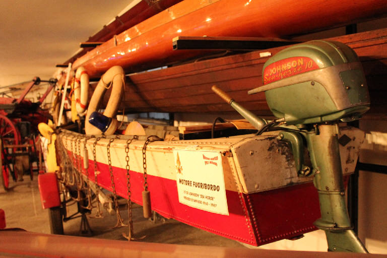 Barca da recupero vigili del fuoco in alluminio da 6 m. Montata su apposito rimorchio targato 909D.F. Completa di motore fuoribordo 10 CV Johnson "SeaBors" periodo impiego 1960/1967