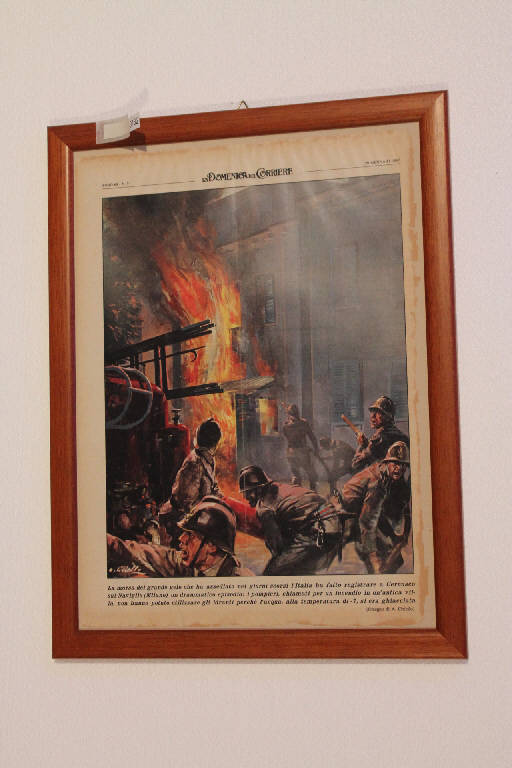 Quadro con foglio de "La Domenica del Corriere" soggetto: incendio data 29-01-1967
