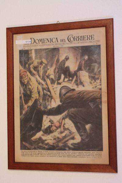 Quadro con foglio de "La Domenica del Corriere" soggetto: salvataggio dopo esplosione data 22-06-1952